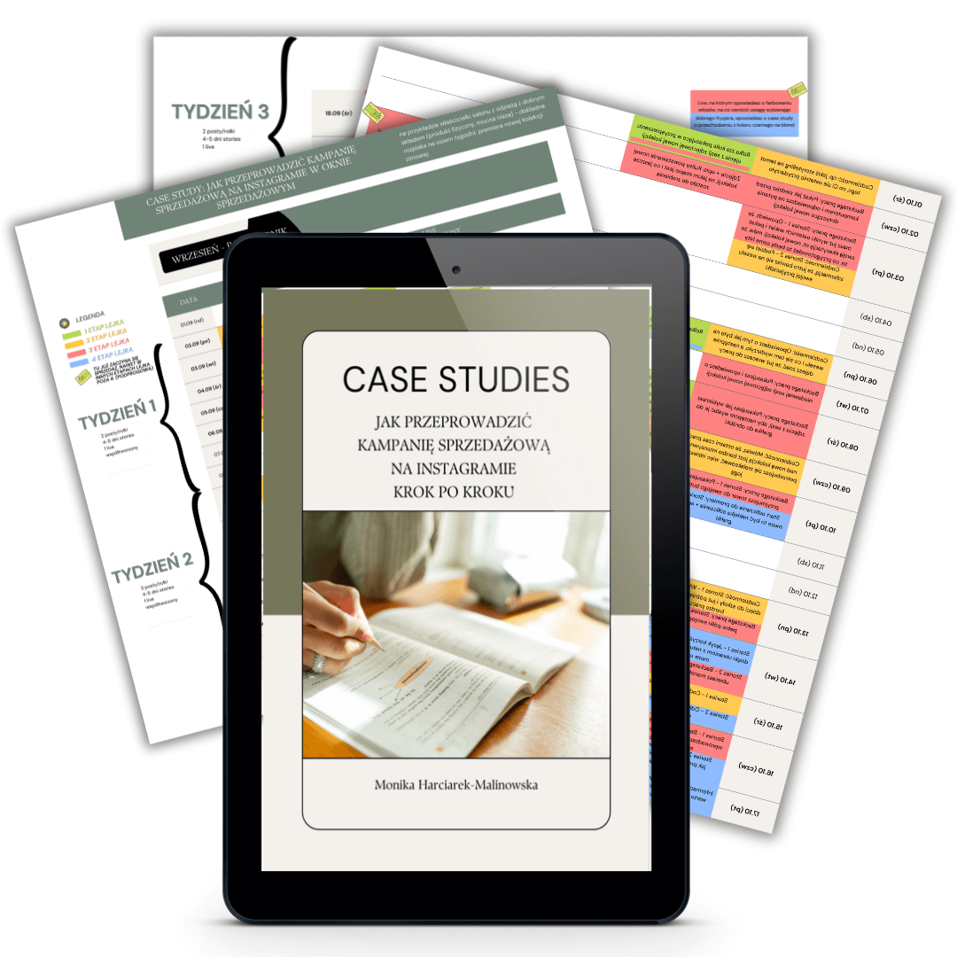 W tych case studies dostaniesz konkretne rozpiski harmonogramu postów na Instagramie, zarówno w formie okna sprzedażowego, jak i jako sprzedaż ciągła.